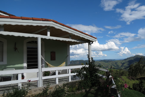 • Varanda com vista para montanhas, churrasqueira e rede.