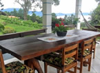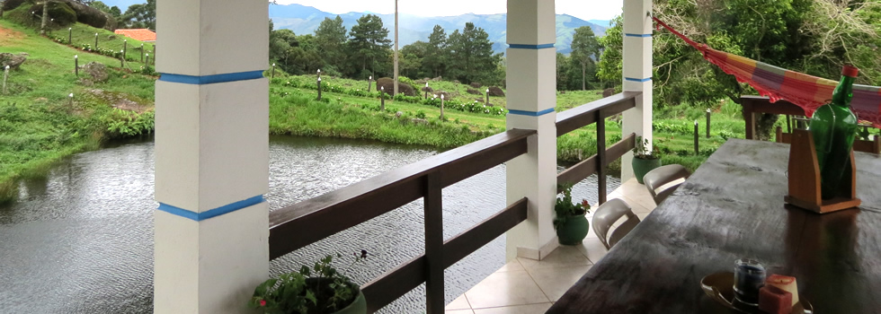 Além de todo o conforto interno oferecido a Casa do Lago possui uma linda varanda com churrasqueira, rede e um grande espaço para refeições, sem esquecer é claro, da linda paisagem da montanhas abaixo da fazenda.